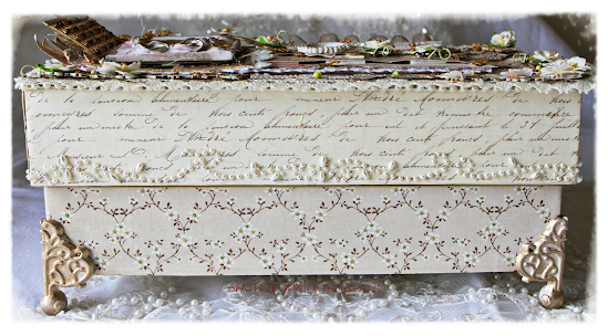 The challenge theme this month is 'Celebrate Your Style'. Along with several of the other guest designers I love both vintage/shabby chic style and all things Nature so have combined these to make a trinket box for all seasons. I hope that you will visit Anything But Cute to see all the wonderful mixed media talent there, and why don't you celebrate your own style by entering their challenge.